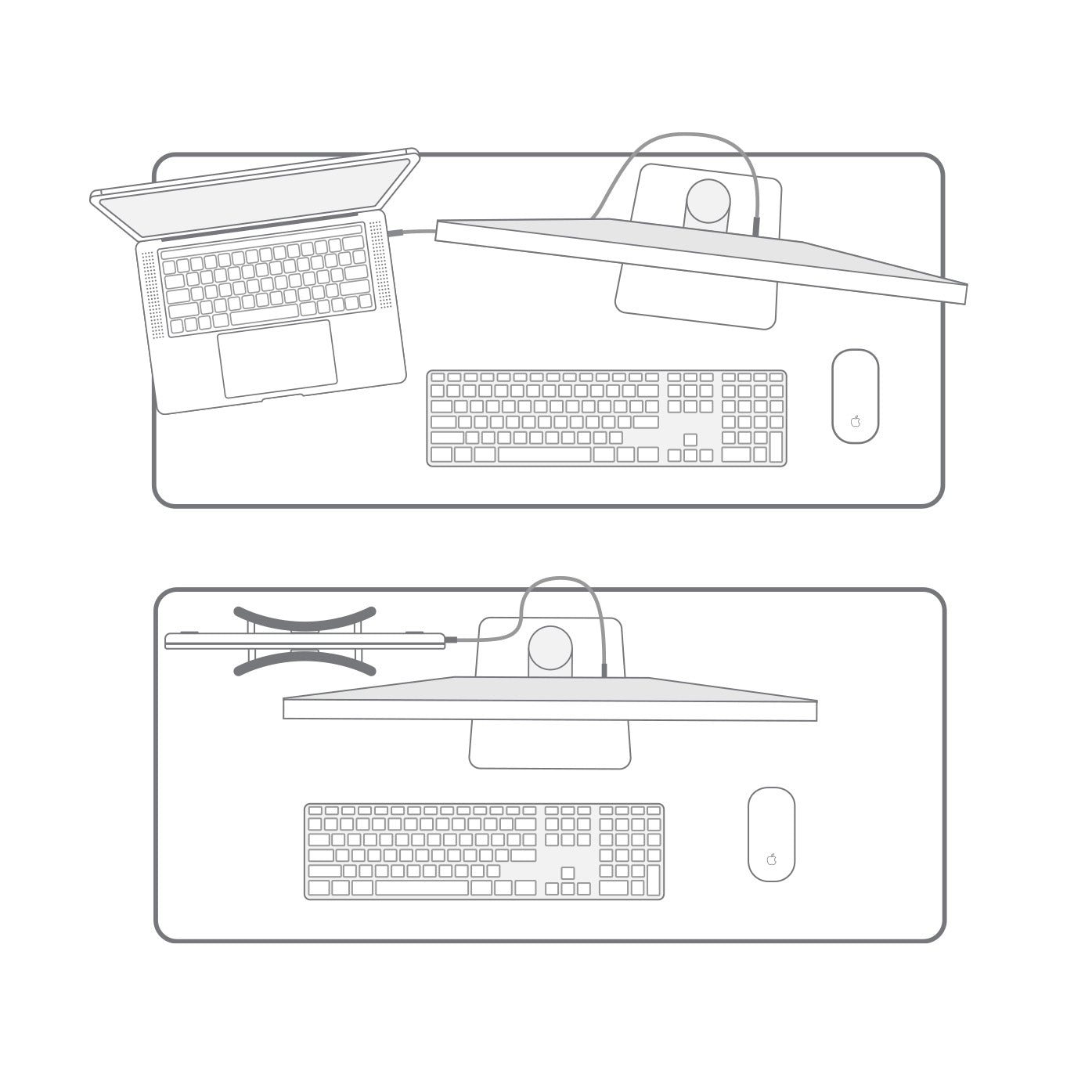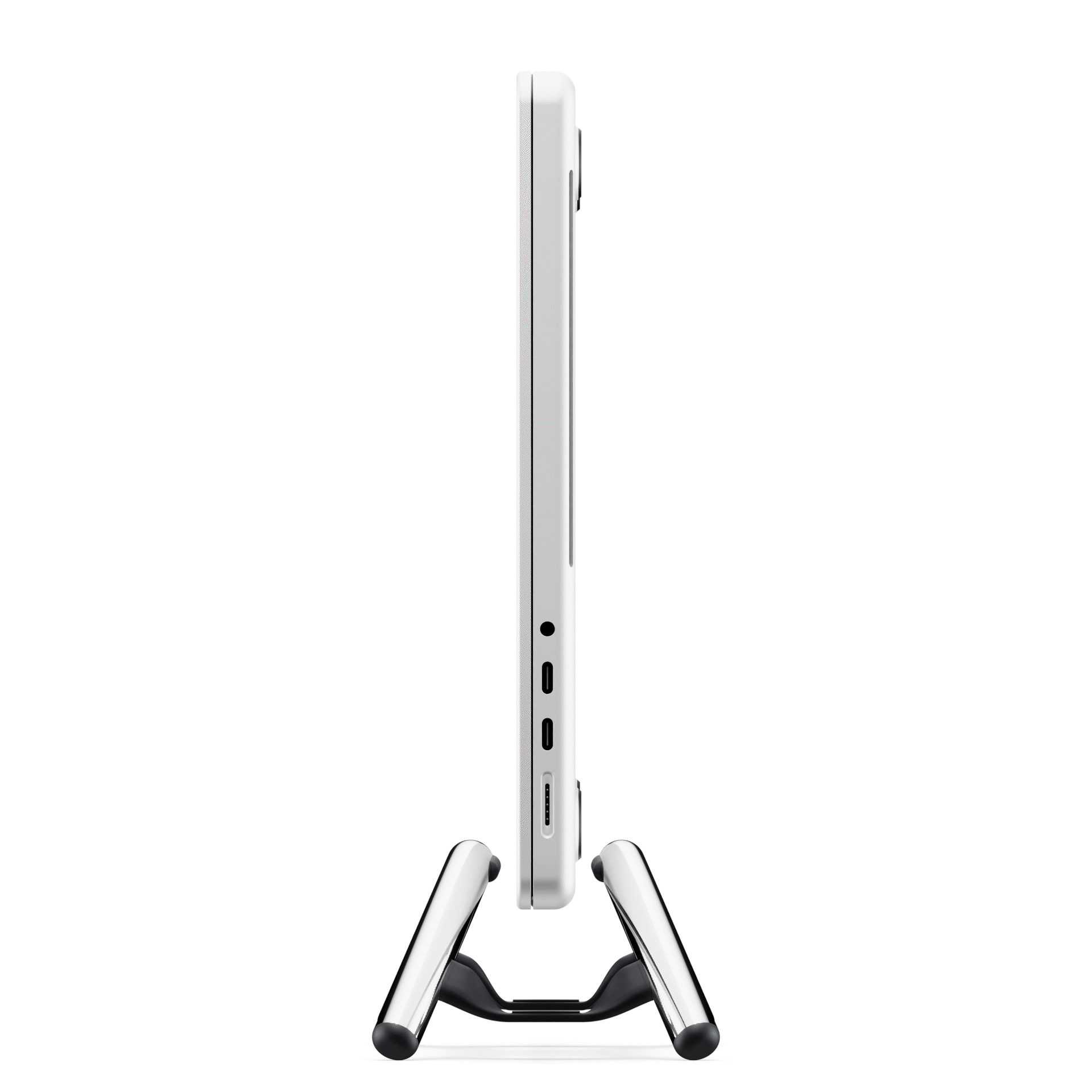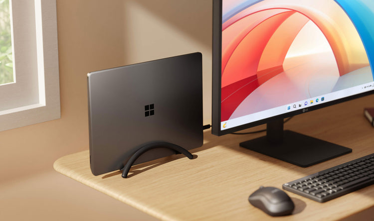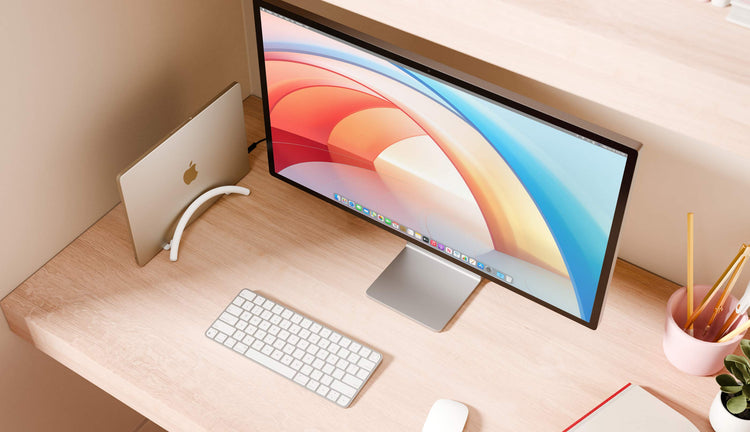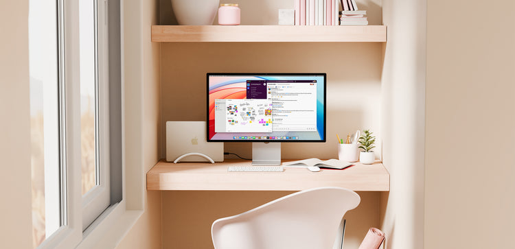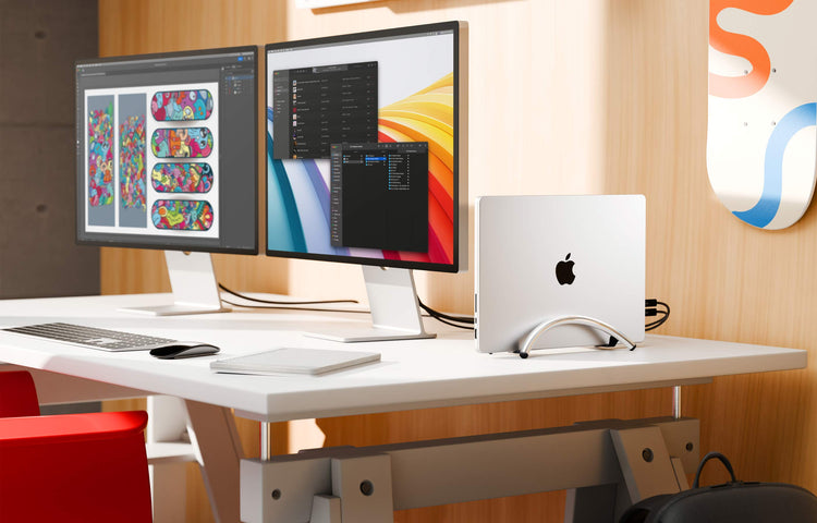 By holding your MacBook vertically, BookArc Flex frees up space for that big display you’ve been dreaming of. You can even slide BookArc Flex and your MacBook behind your monitor to save even more space. Need to take your MacBook on the road? Just unplug it and go.