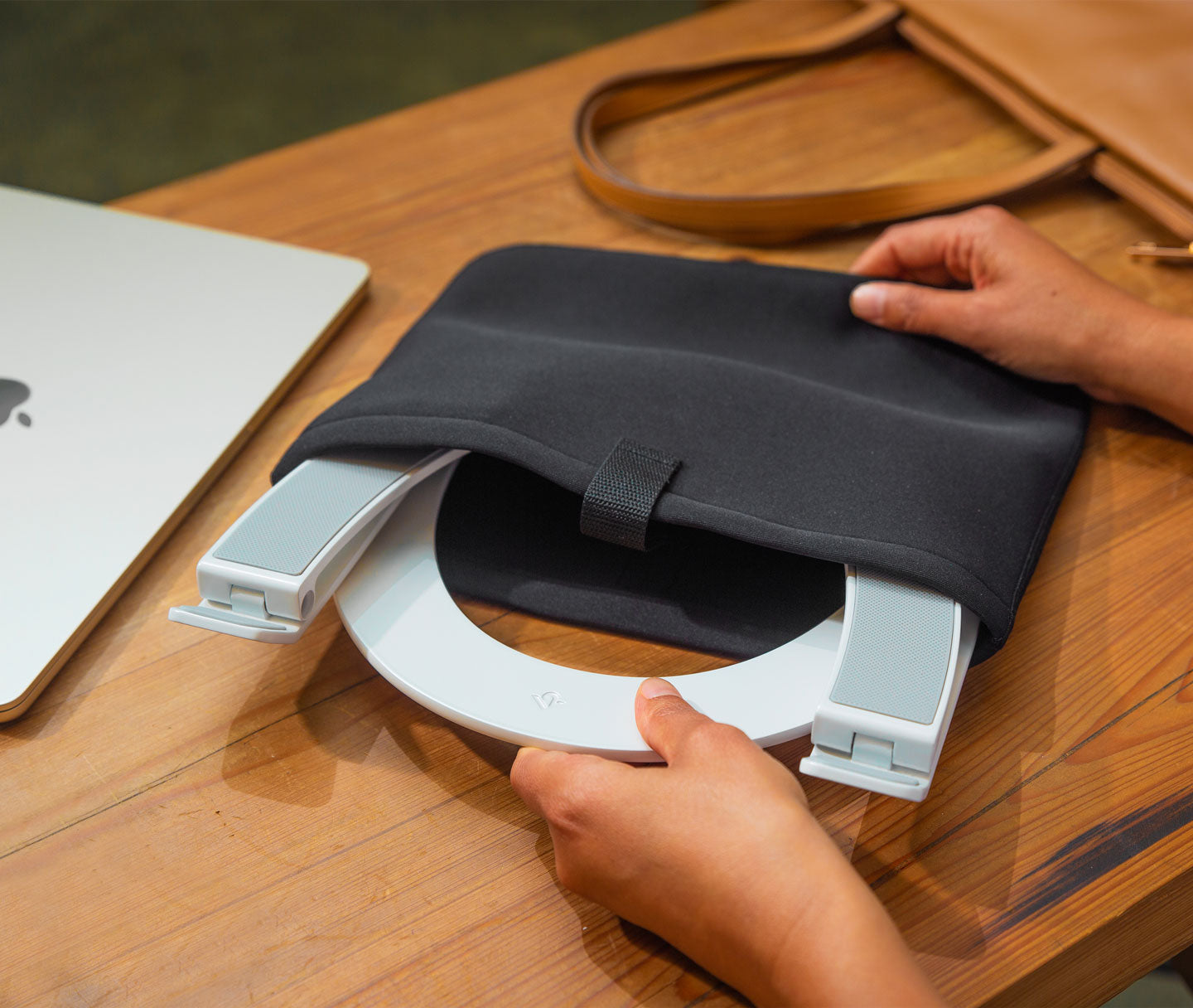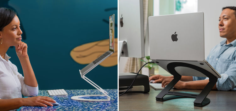 This gorgeous, highly flexible MacBook stand folds flat so you can take it pretty much anywhere. To and from work, coffee shops, co-working spaces, or on trips. The 28-ounce Curve Flex even includes a padded neoprene travel sleeve.