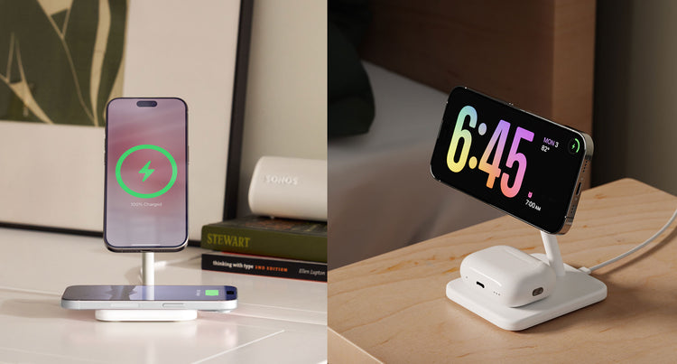 HiRise 2 Deluxe is a multi-charger designed with the same integrity as the Apple products it charges. It wirelessly charges your iPhone and AirPods, with the option to use the second charging spot for another phone.