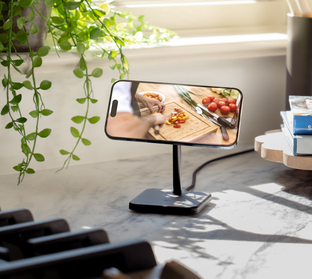 This high-quality, well-built stand seamlessly blends into any stylish room. It features an adjustable tilt, allowing you to set your phone at the perfect angle for FaceTime chats or viewing notifications.