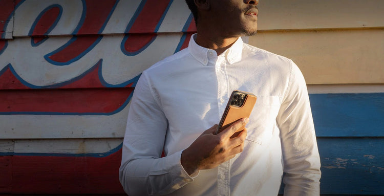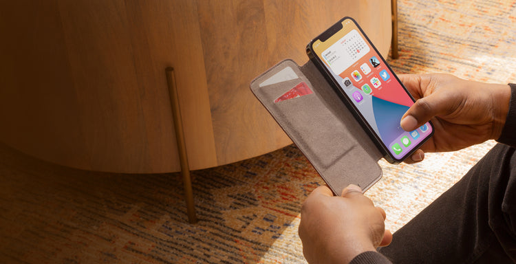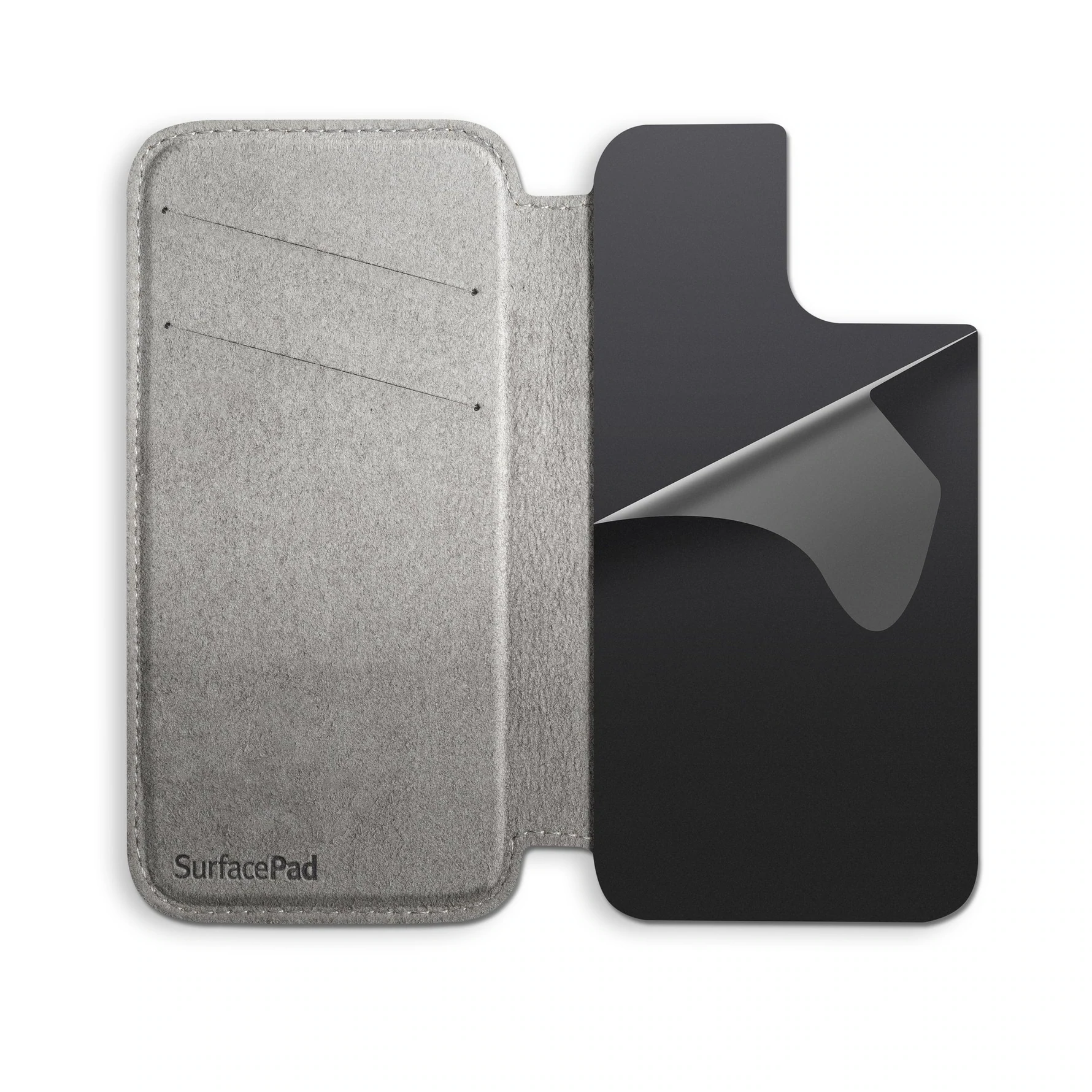 One of the first things people ask about SurfacePad is, “Will my MagSafe Charger work with SurfacePad on my phone?” The answer is yes. With slots on the inside front cover, you don’t have to remove SurfacePad to access your cards or charge your phone. Since your cards stay connected, there’s less risk of misplacing or forgetting the cards you keep inside this little leather cover. A camera cutout lets you capture amazing photos and video, too.
